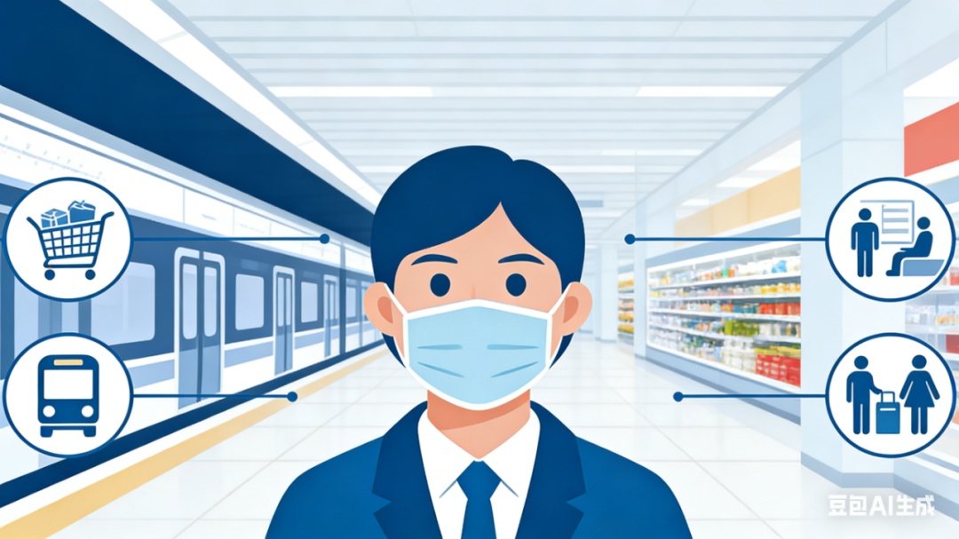 ★前往“密闭人多”场所时,前往环境闷、人多密集的超市、候车大厅,或乘坐公共交通工具时;