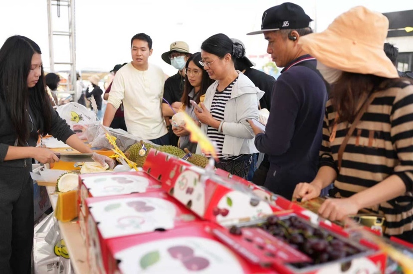 记者在现场看到,南沙港口新鲜集市人头攒动、热闹非凡。车厘子价格从288—318元一箱,凭五月天演唱会门票还可以享受95折。2J-4J规格智利车厘子2小时销量达1000斤,成为最受追捧的爆款单品。“刚到港的车厘子,两小时到达港口集市,更大个更新鲜更便宜!”南沙港进口水果商店店主庄萍介绍,除了车厘子,还有泰国的翡翠柚、椰青、印尼的蛇皮果、新西兰全品类进口水果,“很多产品可以先试吃,满意了再购买。”