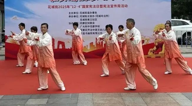法治文化表演环节形式多样、气氛热烈。乔治幼儿园的孩子们以手语舞《宪法伴我们成长》温情开演,用充满童真的动作诠释宪法守护;广大附中花都学校学生团献上快板《校园普法听我讲》,在明快的节奏中普及法律知识;社区表演队则带来太极拳《“拳”释普法新篇章》,以刚柔并济的肢体语言,形象诠释调解工作中“法理情”相融的智慧。
