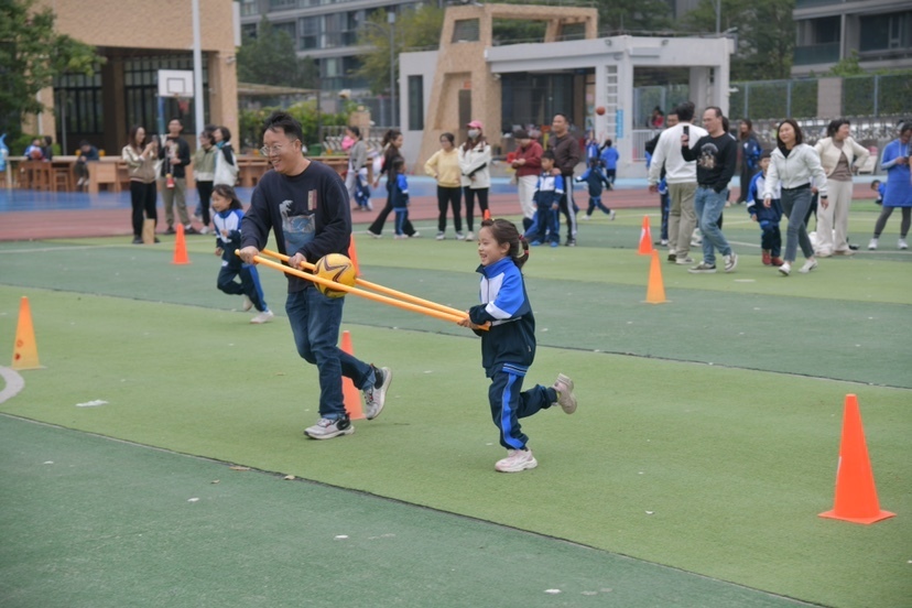 开幕式结束后,亲子运动会正式开始。家长与孩子们共同参与了迎面接力、摸石头过河、风雨同舟、你拉我跑、穿越丛林五个趣味项目。赛场上,亲子搭档默契配合、奋勇争先,加油声、欢呼声此起彼伏。有家长表示,这样的亲子运动不仅增进了与孩子之间的感情,更让他们感受到了校园生活的欢乐氛围。