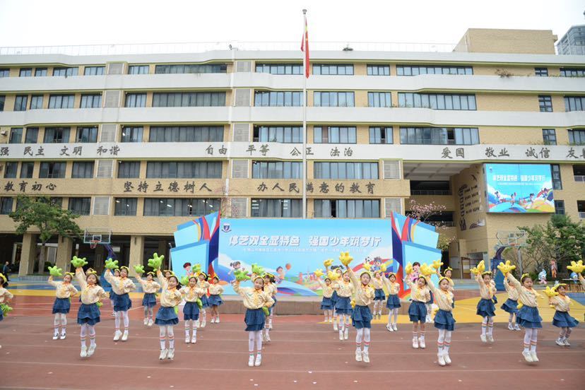 年级才艺秀环节是本次开幕式的亮点。一年级学子带来《活力马里奥闯赛场》,孩子们身着特色服装,动作活泼可爱,将马里奥的灵动与朝气展现得淋漓尽致。二年级的《篮球梦·中国梦》以篮球技巧展示结合集体舞蹈,展现了少年儿童对篮球运动的热爱与对中国梦的憧憬。三年级《气势如虹》表演气势磅礴,整齐划一的动作彰显出团队的凝聚力。四年级《灯火映岭南》融入岭南文化元素,舞姿优美、意蕴悠长。五年级《强国少年》以昂扬的姿态、嘹亮的歌声传递出少年强则国强的信念。六年级《云宫迅音》创意十足,将经典旋律与现代舞蹈完美融合,赢得现场阵阵掌声。