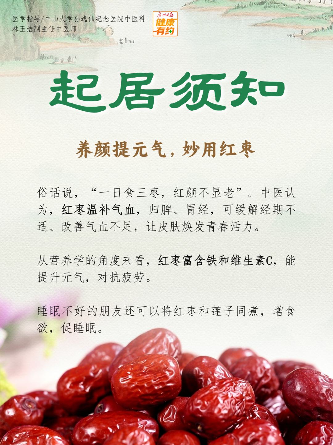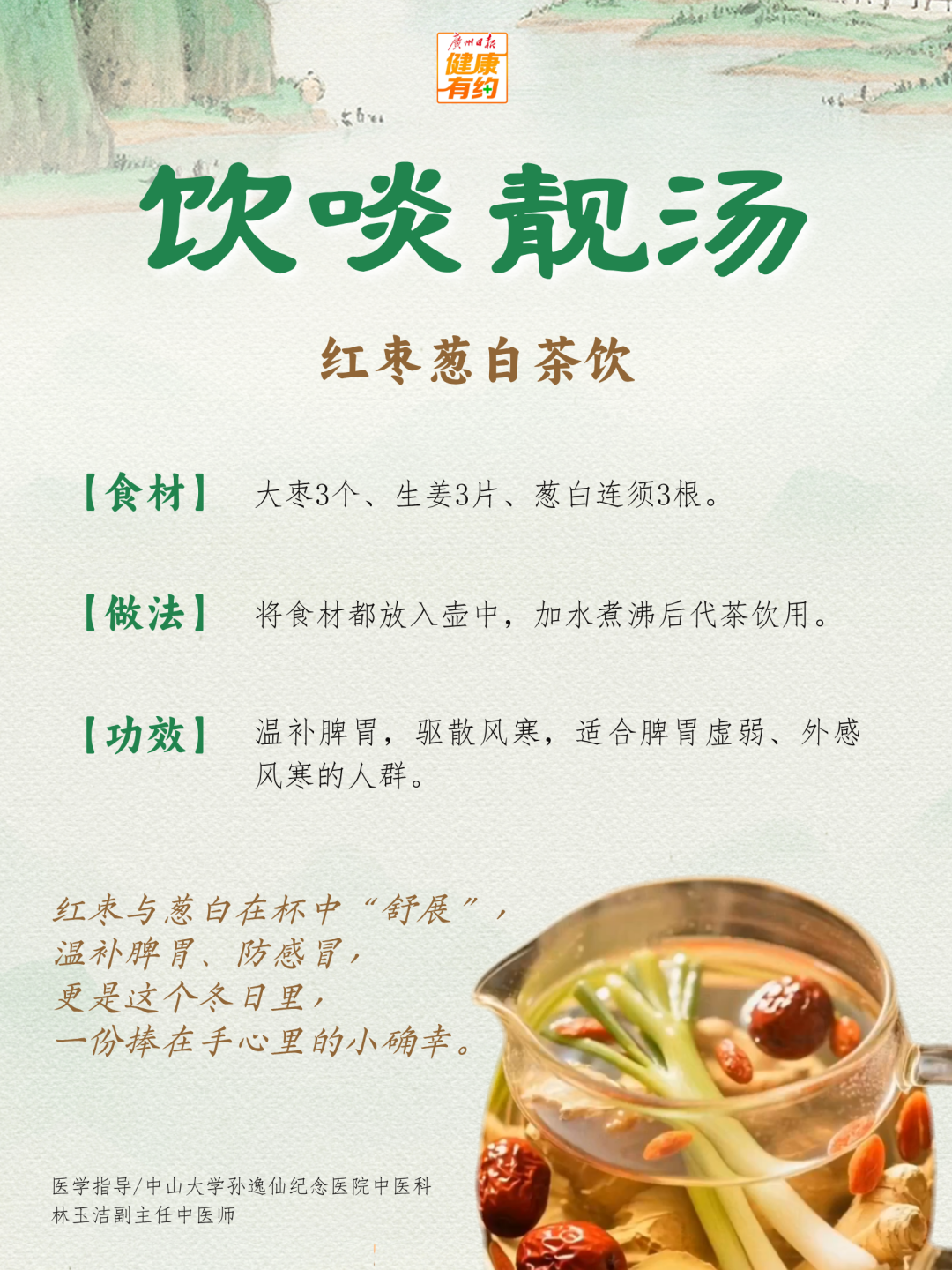12月7日是大雪节气,此时是呼吸道疾病高发季,老人和孩子尤其容易中招。推荐一个对预防呼吸道问题大有裨益的“好物”——红枣。可以使用红枣做一道“红枣葱白茶饮”,温补脾胃,驱散风寒,适合脾胃虚弱、外感风寒的人群。