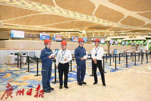 白云机场新航站楼投产前,广州供电局工作人员跟机场工作人员讨论机场用电需求,提供全方位的电力保障。