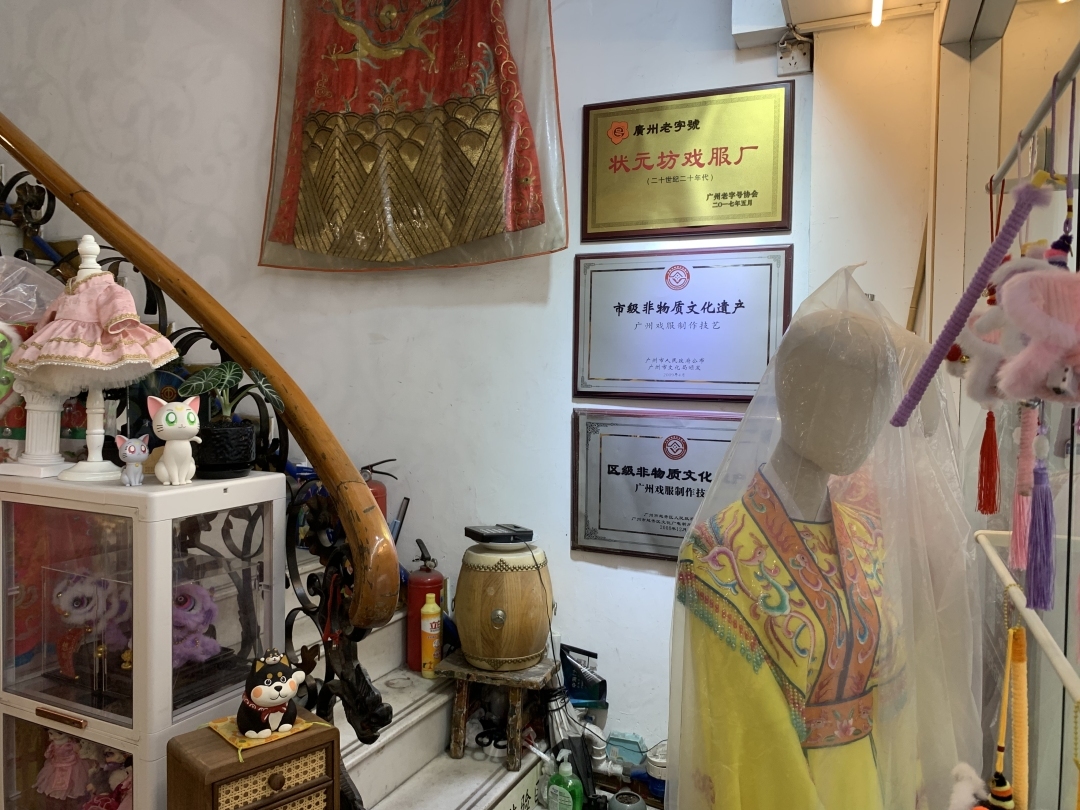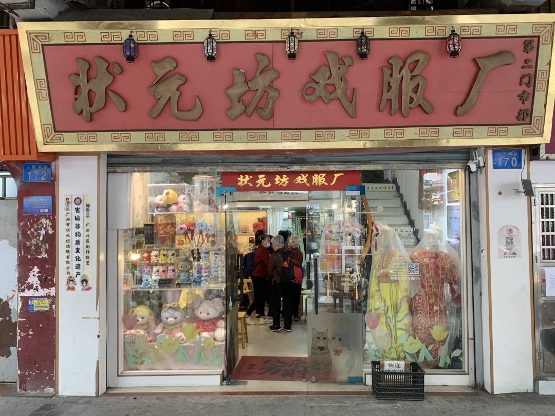 在上世纪九十年代粤剧及戏服走向下坡的时候,广州戏服制作技艺代表性传承人董惠兰女士倾尽所有,把状元坊戏服厂承包下来,并将店铺重新装修。