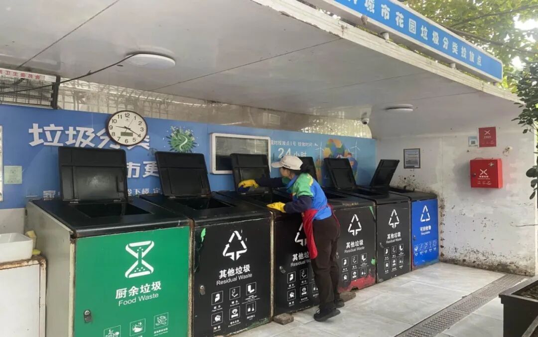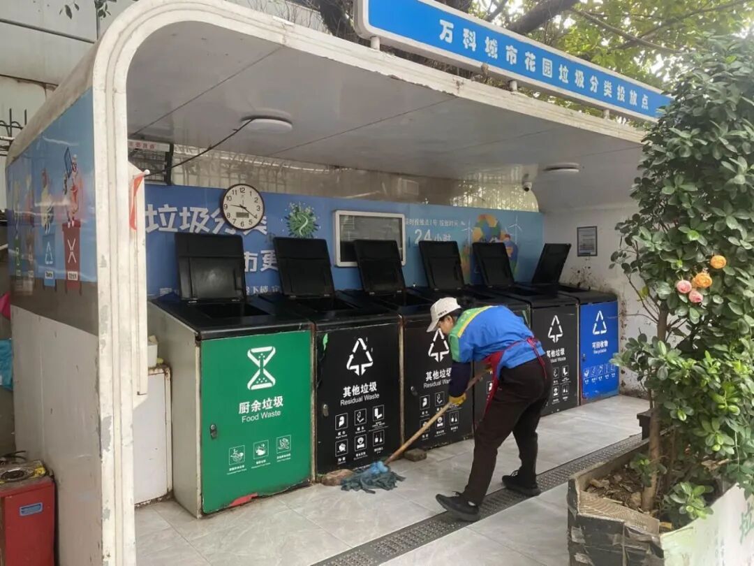 在黄埔区文冲街万科城市花园垃圾分类投放点,总有个熟悉的身影。她身着红色工装围裙,一边笑着和居民唠嗑,一边引导大家精准投放垃圾。她就是身兼物业保洁员与垃圾分类站桶督导员两职的张国玲阿姨,她已在这个岗位上坚守了整整四年。