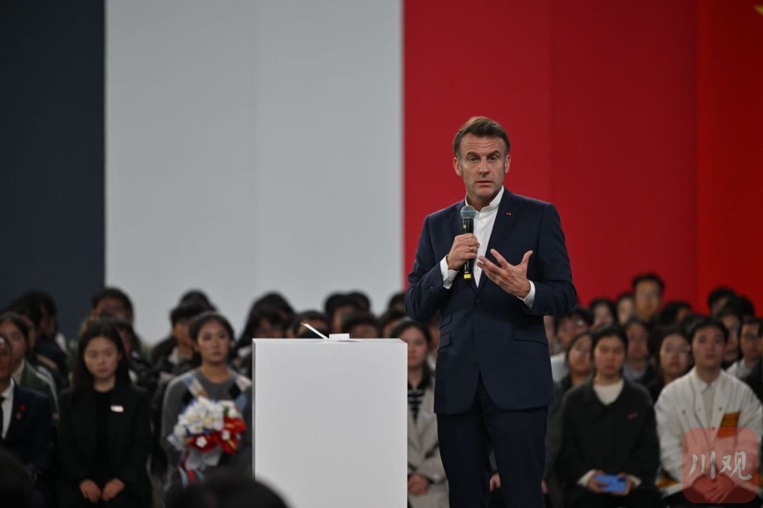 5日下午,马克龙在成都访问四川大学。据报道,马克龙在回答学生提问时说,此行唯一的遗憾便是时光总是太过短暂。都江堰令人赞叹,给他留下深刻的印象。