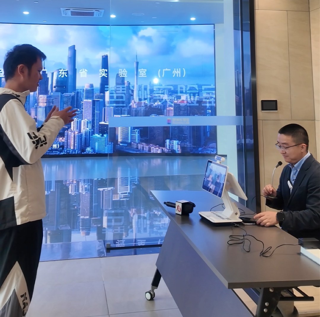 如果一名听障人士想要入住酒店,但酒店前台工作人员不懂手语,当他们想要交流时,应该怎么办?在琶洲实验室,由音书科技开发的“音书手语翻译机”和“音书手语翻译”小程序给出了“解决方案”——如同“滴滴打车”系统,只需要在“音书手语翻译”小程序中点击“呼叫手语翻译”,不到10秒即可“召唤”一名线上手语翻译志愿者,她可以将双方的语音内容和手语画面进行实时转化和翻译,从而为双方搭建起沟通的“桥梁”。