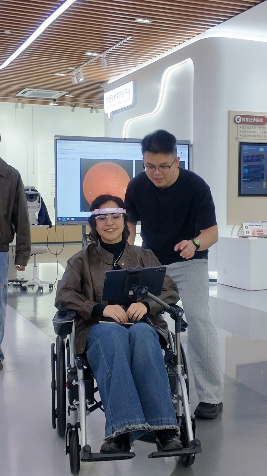 只需要用头动信号以及眼球运动,就可以控制一台轮椅的转弯、直行、启动、停止、加速等运动,且整个操控过程只有毫秒级延时,这一幕让包括李同学在内的不少人为之惊叹。