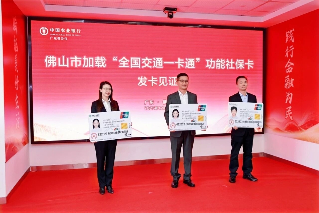 为进一步提升社保民生金融服务能力,助力深化粤港澳大湾区一体化建设,扩大有效金融服务供给,12月5日,中国农业银行广东省分行“人民金融创新服务中心”揭牌活动在佛山举行。本次揭牌仪式以“践行金融为民 赋能美好生活”为主题,还举行了三代社保卡加载全国交通一卡通应用建设签约发卡仪式。