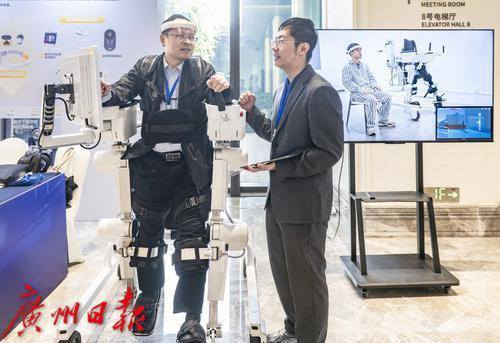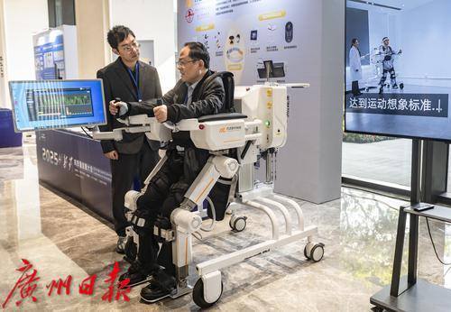 大会高科技展示区,参会嘉宾体验脑控下肢机器人。