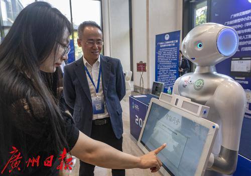 大会高科技展示区,参会嘉宾了解现场展示的中医体质辨识机器人。