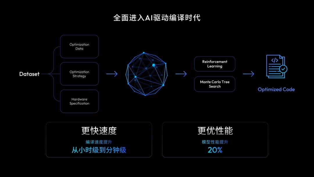 余凯还介绍,在AI计算中扮演着“杰出指挥”的角色的地平线编译器——天工开物OpenExplorer进化到4.0版本,实现了更高的计算精度还具备了更快的效率、更强的性能,能够支持多种Transformer变体以及下一代架构。通过编译速度提升,拥有提升20%的更优模型性能,余凯指出地平线编译器现已全面进入Al-based 编译时代。