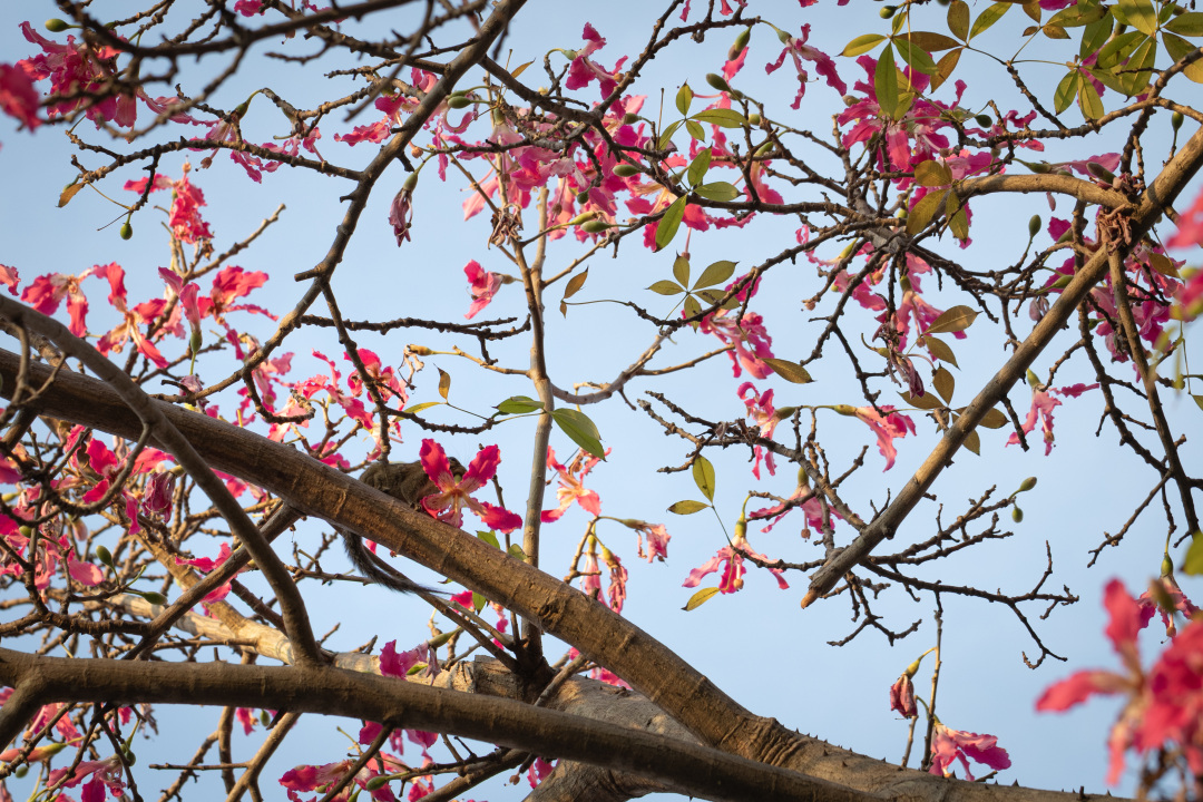 路过开泰大道-新桂路路口,一株美丽异木棉开的格外灿烂。淡雅的芬芳在空气中弥漫。驱车驶过,粉色花影与车流交织,让人沉醉于这一树繁花的美好之中。