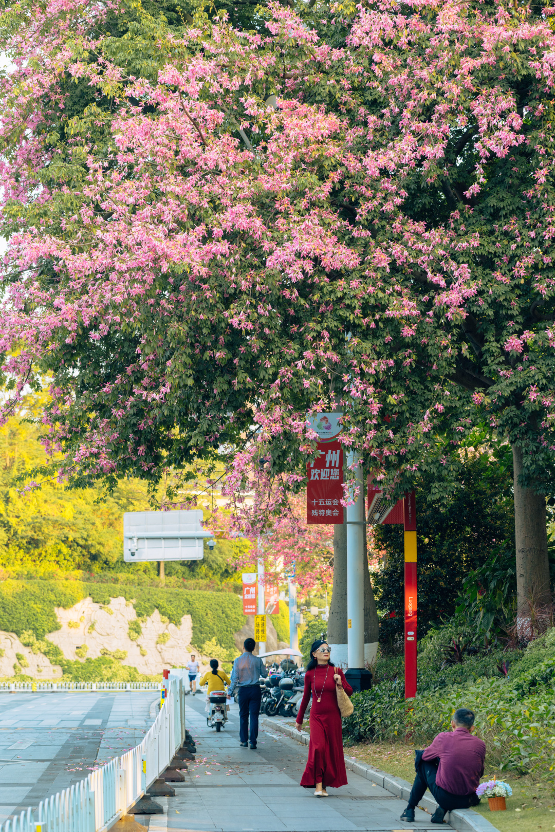 志诚大道中央绿化带和道路侧有亮眼的 “粉色狂欢”,风一吹便似千万只粉蝶振翅,簌簌落下的花雨。