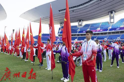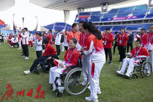 12月9日上午,全国第十二届残疾人运动会暨第九届特殊奥林匹克运动会田径项目比赛在广东奥林匹克体育中心体育场拉开帷幕,当天举行了田径项目开赛仪式,广州市、广东省、中国残疾人联合会相关负责人致辞,现场演唱会歌《共赴山海》。