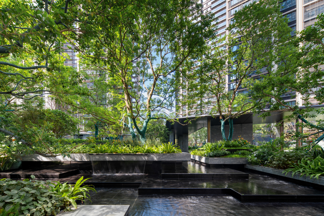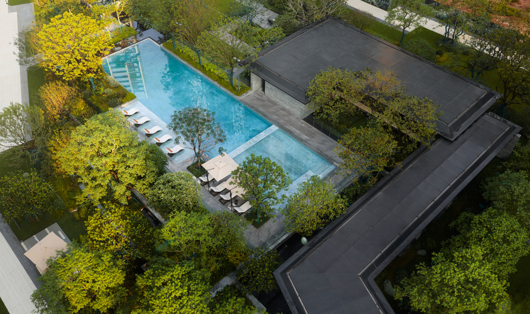 可以看到,项目约5.1万平方米实景园林逐渐呈现,以完整的“山、林、水、谷、岛”地貌逻辑,打造出了一座可游可赏的自然公园。项目入口处叠水与酒店式落客区虚实相映,为归家营造仪式感。约5000平方米运动体系同步开放,配置有双网球场、双泳池,并设篮球场、多功能球场等设施。约2000平方米架空层被创新打造为“绿洲社集”“绿岛艺境”等主题空间,将高定会所的规格搬进了社区楼下。这些空间都通过持续运营的“绿洲社群”,进化成邻里交流、健康生活的核心场所。随着项目持续建设,未来还将有更多适配全龄段的主题场景陆续落地。项目沿河涌打造了800米滨水漫步道,正在打通的归家大道,未来将化为约500米紫花风铃木组成的风景线。