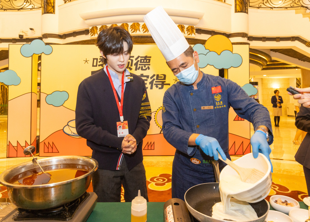 李昊(左)被聘为“顺德城市形象推广大使”,体验顺德美食文化(顺宣 供图)