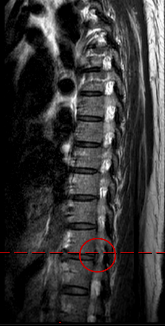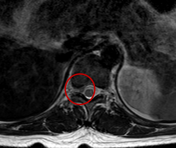 前一阵,她前往广医三院脊柱外科就诊。接诊的主任医师王簕询问完病史后,又为她做了详细的检查,结果发现她的疼痛性质和典型的腰椎源性疼痛不太一样——疼痛位置更固定,且伴随的不适感与腰椎病变的常见表现有明显区别。王簕判断其病根或许不在腰椎,可能在更高位的胸椎,于是为她安排了胸椎磁共振(MRI)检查。