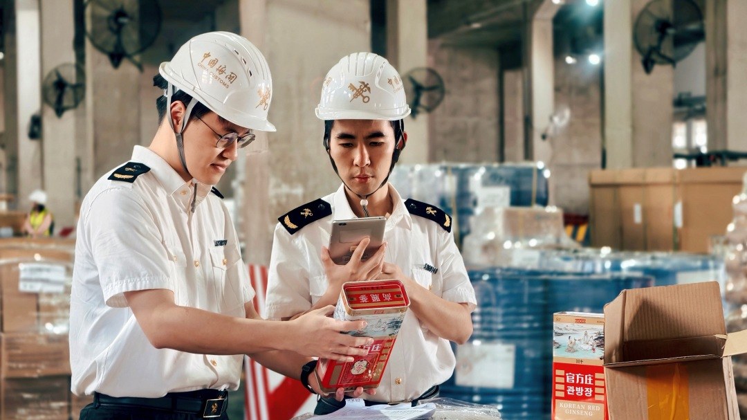 黄埔海关所属黄埔新港海关关员对进口人参产品实施查验。