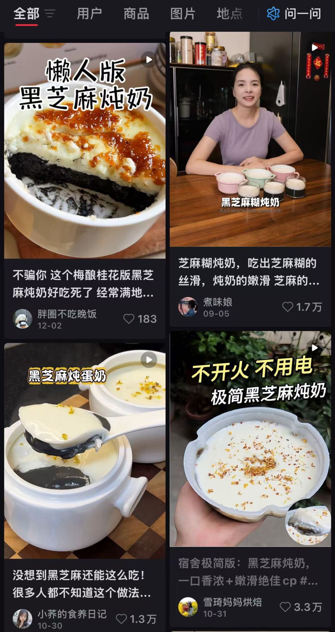 入冬之后,网红甜品黑芝麻炖奶就火了起来,不但在某些本地新式甜品铺稳占销冠位置,在社交平台上也不断涌现各种养生版、懒人版做法。连艺人翁虹也跟风出了视频,并称之为“秋冬炸毛乌发的养生甜品”。