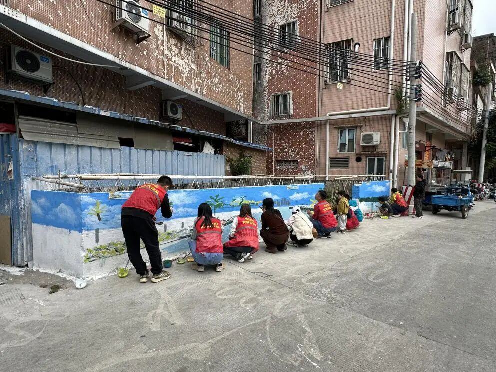 本次活动,发动了党员及群众共计40余人参与,对环村西路已建成的“四小园”以及作为村庄形象重要展示窗口的环村西路2号岗亭进村口,对其周边墙体进行墙绘美化。