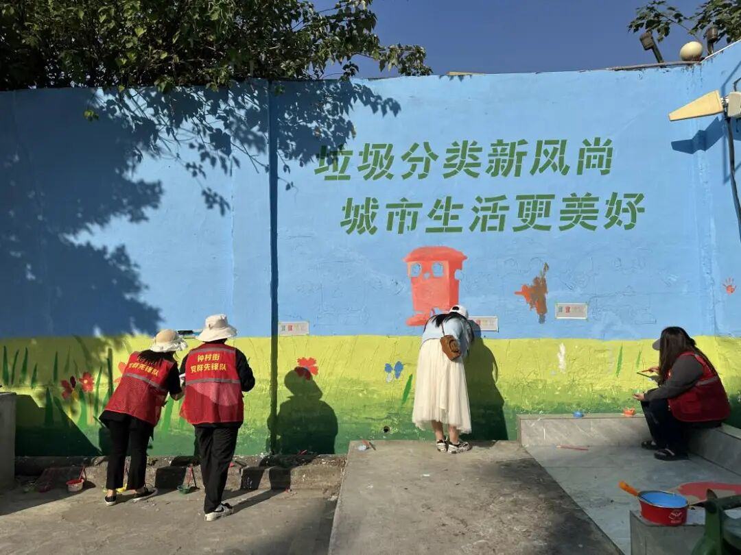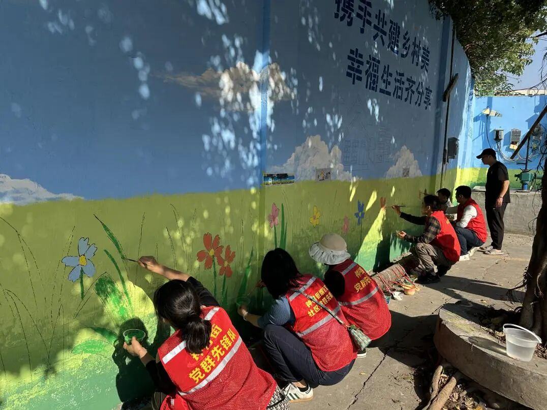 活动中,大家分工协作,对选定墙体进行清理、打底,并紧紧围绕乡村振兴、田园风光等主题精心创作,更是利用进村口墙绘的位置优势,绘上“垃圾分类新风尚,城市生活更美好”“做实‘百千万’、激活新活力、再造新优势”等宣传标语,将艺术美化与文明倡导巧妙融合。