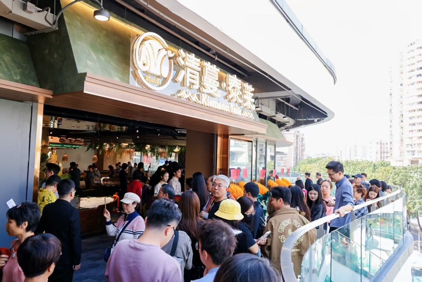 目前,项目整体招商率高达90.5%,开业率62.5%。尤为亮眼的是,成功引进多家海珠区乃至广州市场的特色首店,形成具有吸引力的品牌矩阵。不仅汇聚了粤・向群饭店、永利饭店、老西关濑粉、文明百花甜品等承载老广味觉记忆的老字号,更引入香港喜记避风塘炒辣蟹、清蔓泰莱泰国海鲜火锅烧烤自助餐厅等特色餐饮,形成极具竞争力的品牌集群。潮流生活场景同样精彩纷呈:罗森24小时便利店满足全天候消费需求,AFTER GLOW雾色威士忌吧、LA ASH、汤布里波炸鸡、七欣天香辣蟹等网红门店相继入驻,引领年轻社交新风尚,成为热门打卡地。