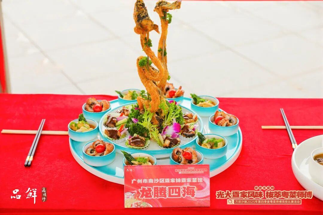 ▪ 12月10日,“光大疍家风味·拔萃粤菜师傅”——2025年万顷沙镇第四季度粤菜师傅竞技比赛在大湾区文化体育中心旁的开放式全民文化体育广场圆满落幕。比赛现场,9组来自大湾区餐饮企业及职业院校的顶尖团队强强对决,以万顷沙秋冬风物为卷,以疍家技艺为笔呈现出一道道有温度、有深度的饕餮盛宴。