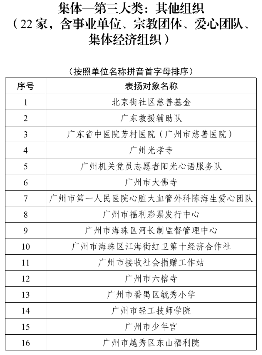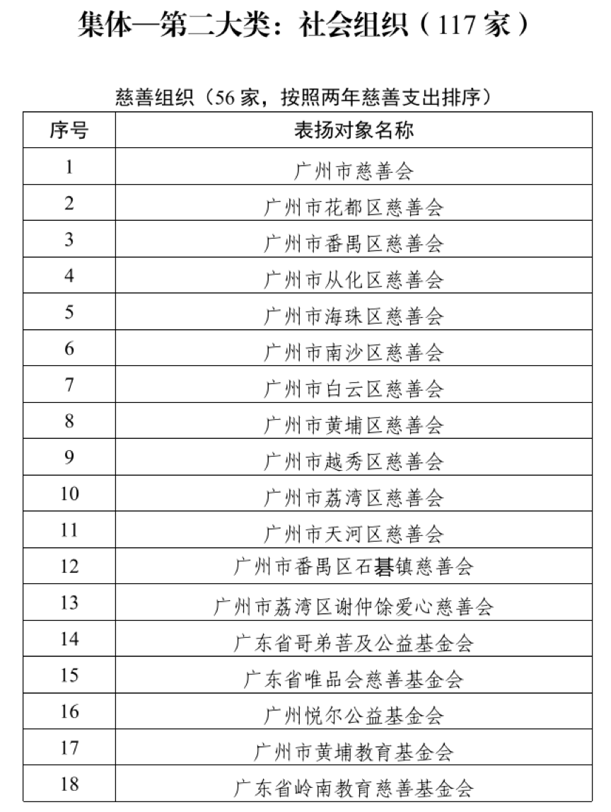 社会组织类别中,117家机构获得表扬,其中慈善组织56家、其他社会组织61家。广州市慈善会、花都区慈善会、番禺区慈善会等慈善组织,以及广州青年志愿者协会、街镇商会等其他社会组织,展现了广州慈善组织的多元生态。此外,22家其他组织和59名个人也获得表扬。这些个人中,既有企业家的慷慨捐赠,也有医生、律师、社工、退休人员的默默奉献,印证了“人人慈善”不分职业、不分年龄的理念。