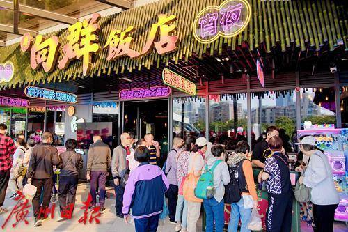 现场英歌舞表演拉开序幕,推出"满100-30"等优惠活动。宝悦坊汇聚粤・向群饭店、永利饭店等老字号,引入香港喜记、清蔓泰莱等特色餐饮,招商率达90.5%,开业率62.5%。同时引入VR、AR互动项目,打造潮流生活场景。