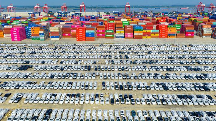△江苏省港口集团南京港龙潭港区准备装船出口的汽车