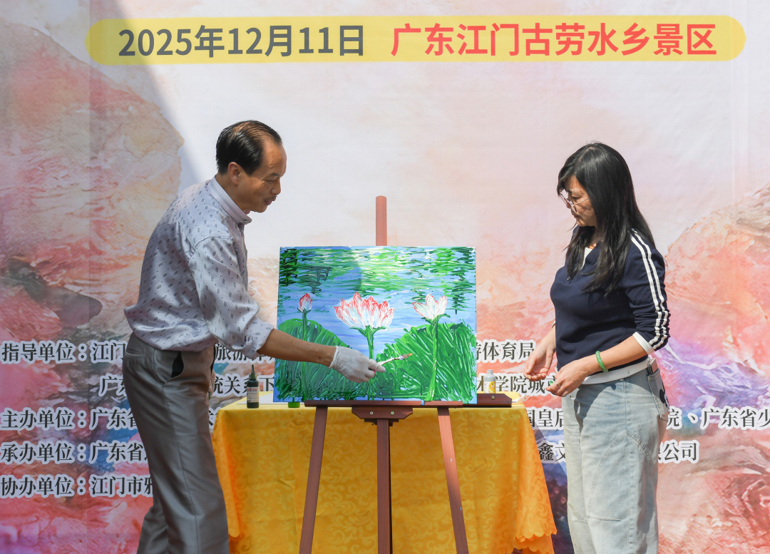 为深入贯彻广东省“百千万工程”与“双百行动”,推动美育普及与文化振兴,在江门市文化广电旅游体育局、鹤山市文化广电旅游体育局、广东省教育系统关心下一代工作委员会、广州美术学院城市学院指导下,“双百行动·美育浸润进江门”流彩画艺术创作基地于古劳水乡正式启动。该基地由广东省文化艺术行业协会书画艺术品委员会、美国皇后画院广州分院、广东省少儿美育艺术研究院等联合主办,广东省远大慈善基金会、江门古劳水乡旅游区等共同承办,标志着国际化艺术资源与岭南本土文旅场景的一次深度嫁接。