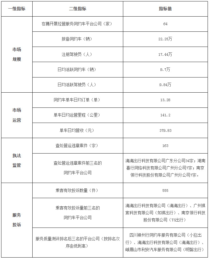 近日,广州市交通运输部门发布2025年10月份广州市网约车市场运行管理监测信息。