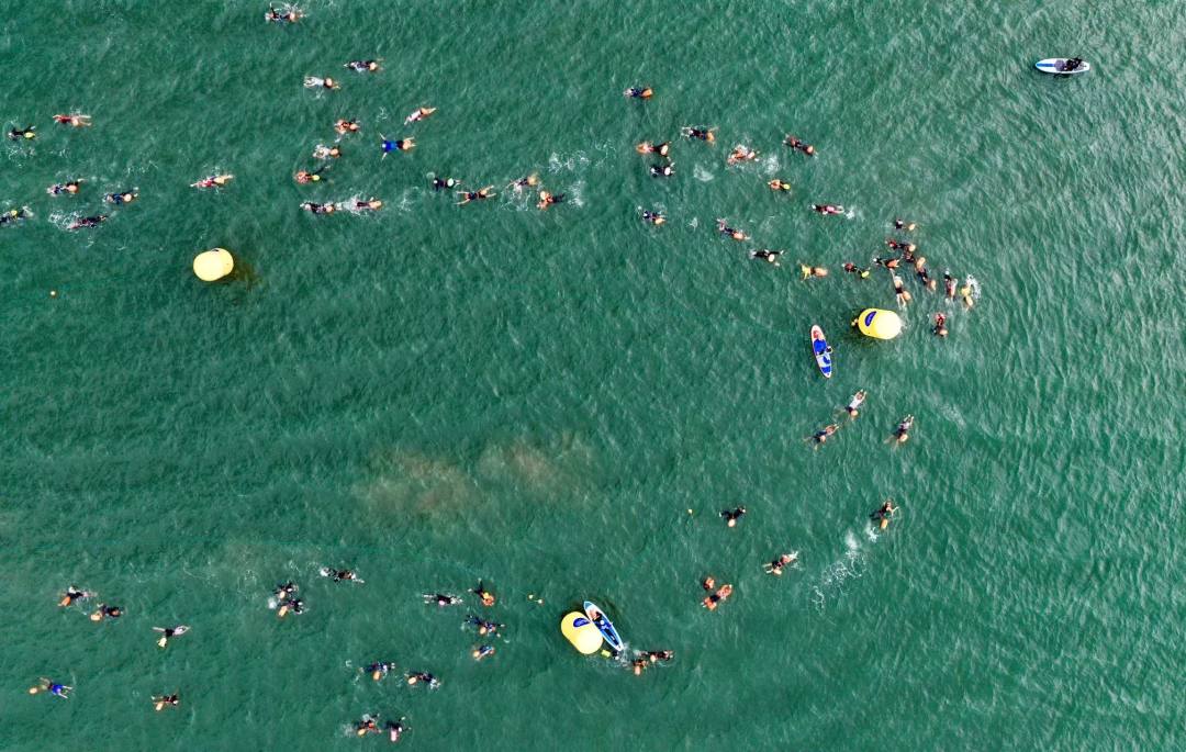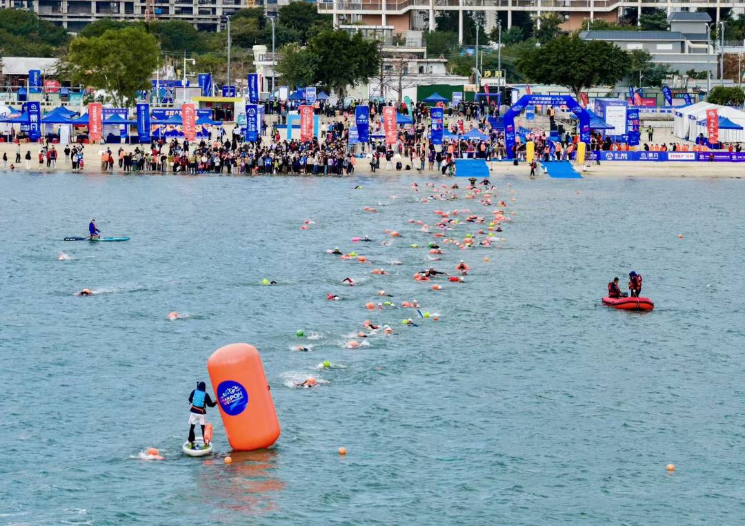早上9时,铁人三项赛与畅游品清湖项目相继开赛。选手们在品清湖水中破浪前行,在海滨大道上骑行竞速,在亲水步道上奋力冲刺,用汗水与坚持诠释对运动的热爱。