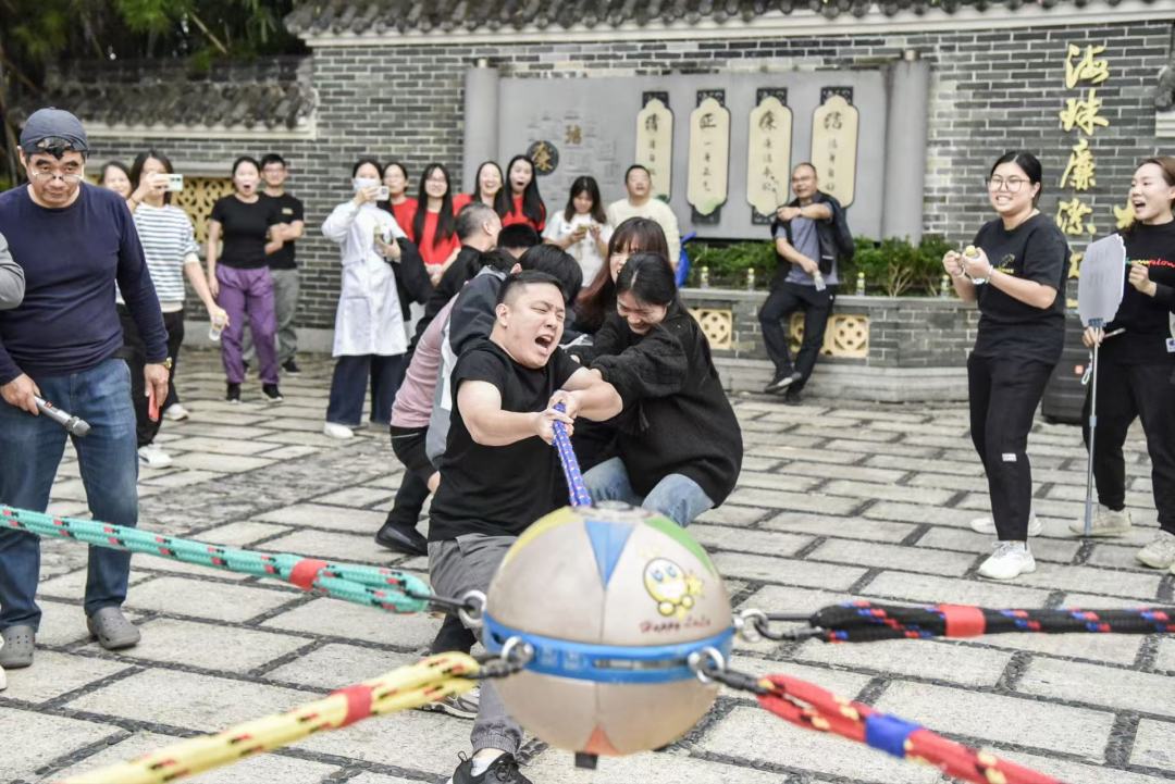 比赛现场气氛热烈,欢笑与喝彩此起彼伏。“花样智力拔河”项目中,参赛队员既要比拼力量,又要讲究战术配合,力量与智慧的较量让比赛充满悬念;“马到成功”环节则需参赛者在奔跑中运筹帷幄,展现了动静结合的独特魅力;“智穿呼啦圈”项目考验团队的默契程度,队员们手拉手、心连心,在有限的条件下展现无限的创意;“乒乓接龙”中大家精准控制平衡,并默契配合传球,每一次成功的传递都引发阵阵欢呼。
