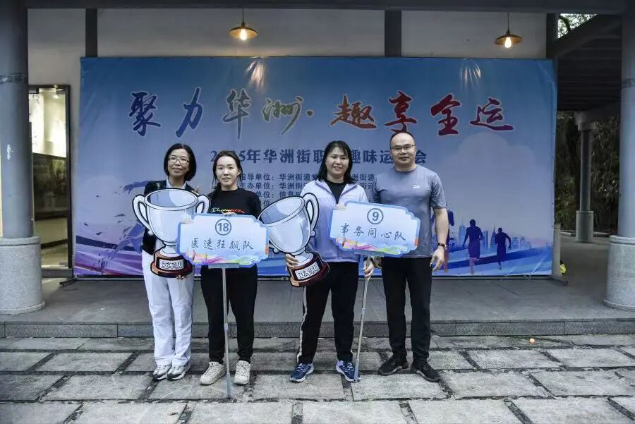 经过轻松愉快又充满挑战的角逐,各项赛事圆满完成。最终,童心活力队凭借强劲的实力摘得桂冠,医速狂飙队、事务同心队获得二等奖,人民当家做主队、先锋之洲队、洁美华洲活力环监队获得三等奖。