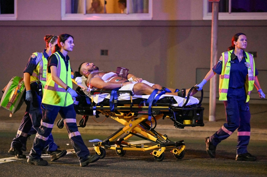 12月14日,在澳大利亚悉尼邦迪滩,医务人员将枪击案受害者送往救护车。新华社发