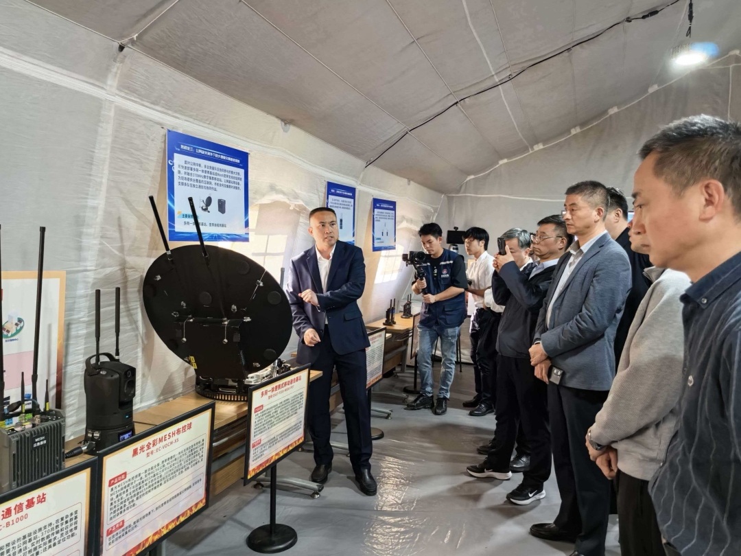 学员们实地观摩大型移动指挥车+指挥帐篷的“空天地一体现场指挥部”。“接到指令1小时内抵达现场,15分钟完成搭建,极端‘三断’情况下也能通信畅通。”随着工作人员操作,无人机升空传回实时画面,多网一体便携式基站迅速搭建起通信“接入岛”,实现窄带语音、宽带视频同步传输。这套“车载机动、便携突击、单兵延伸”的装备体系,彻底扭转了极端环境下应急指挥“进入即失联”的被动局面。