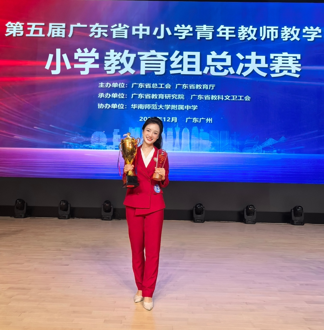 据悉,陈依宁在省赛中荣耀摘桂,这不仅是其个人实力的彰显,更是广东省、佛山市、顺德小语团队、大良街道教育同伴共同赋能、发展的成功。据悉,来自佛山市、顺德区、大良街道和本原小学的教研员、指导名师代表,齐齐将“精准破题、高效支撑”的理念贯穿备赛全程,为陈依宁搭建起通往桂冠的坚实阶梯。“此刻,我是一个被别人托举的人,未来我一定会成为一把坚实的阶梯,支撑更多的青年老师迈上更高的台阶。”陈依宁说。