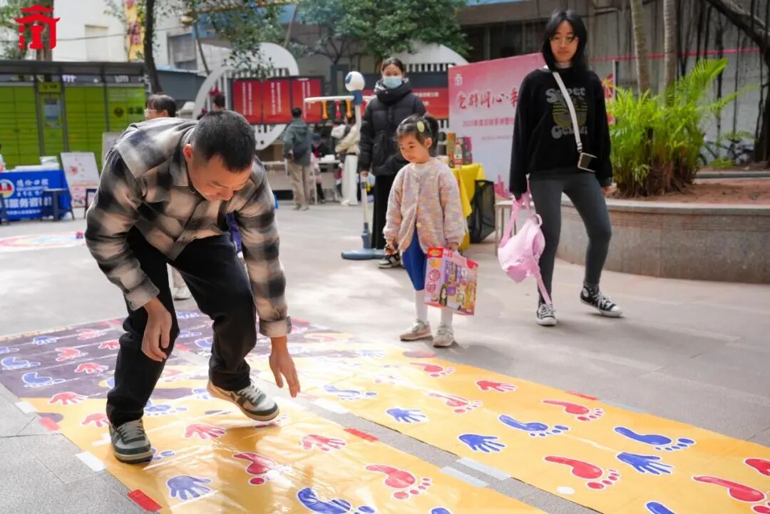 互动游戏区热闹非凡。“邻里齐步走”手脚并用游戏吸引了不少亲子家庭共同挑战;“手稳眼明好邻里”眼疾手快游戏考验参与者的反应速度,精彩表现引来阵阵喝彩。