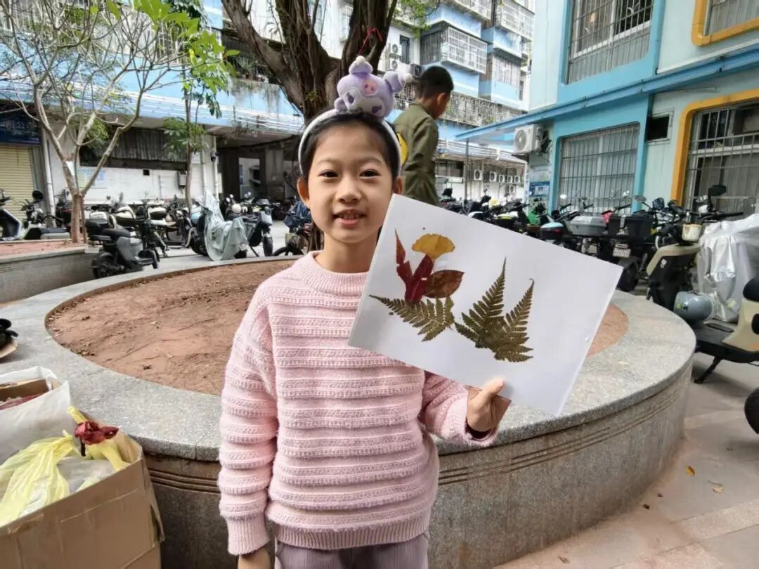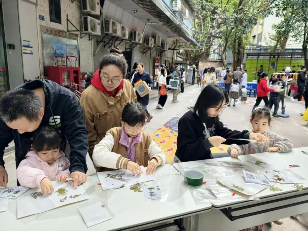 文化体验区摊位前聚集了许多手工爱好者,大人小孩齐动手,将形状各异的树叶拼贴搭配,一幅幅创意十足的树叶画应运而生,大家在手工创作中感受着传统文化的魅力与动手的乐趣。