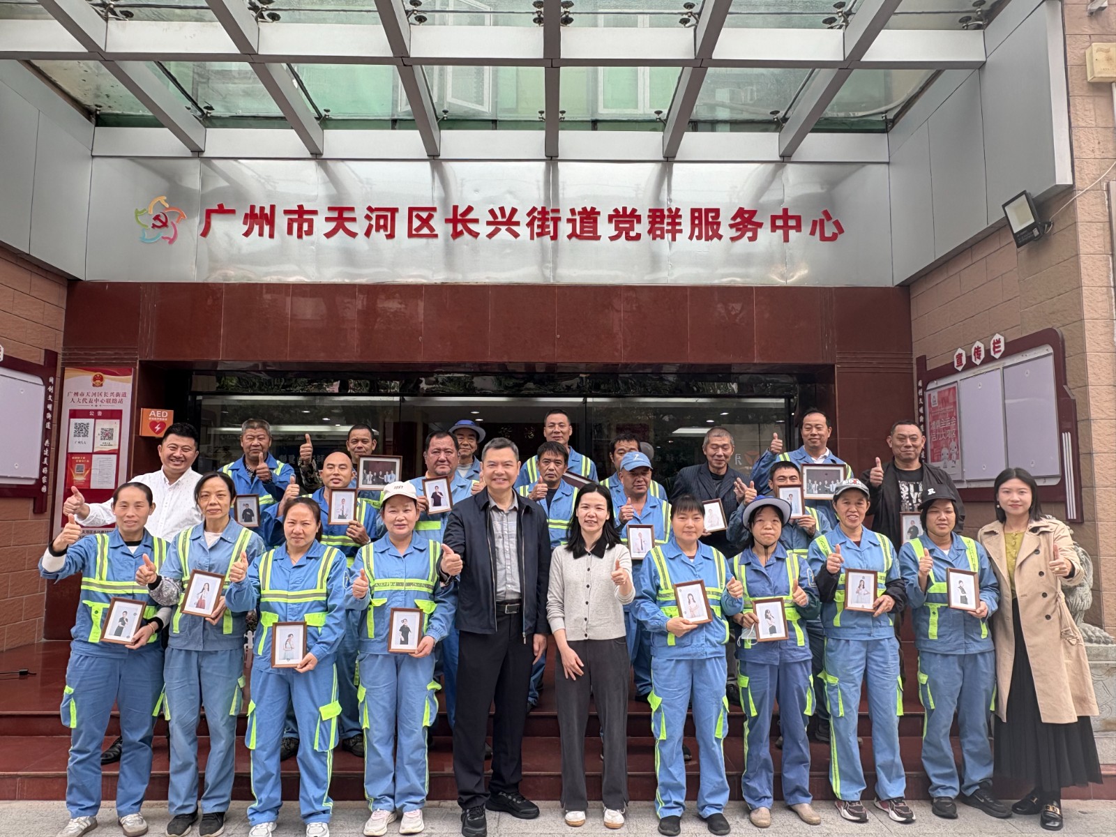 活动结束后,所有照片经专业修图冲印成片,精心装裱入框。长兴街道工会主席与工作人员,将这些满载心意的相框一一送到每位环卫工人手中。