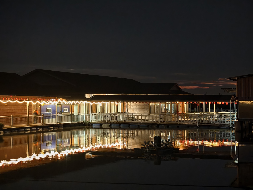 在这里,不必赶行程,先到果园摘一篮清爽可口的番石榴,再回到水边餐桌等一锅热腾腾的无花果浸鸡。抬头是波光粼粼的水面,耳畔是隐约的虫鸣,低头是地道水乡风味,这种悠闲,正是很多人心中向往的生活。