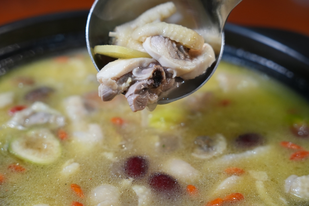 无花果浸鸡:作为餐厅内的“清甜王牌”,无花果浸鸡这道菜几乎是每桌必点,点单率常年第一。食材来源于果园种的无花果、散养的鸡,鸡肉嫩而不柴,带着无花果的香甜。汤色清亮,喝起来先甜后鲜,老人小孩都很喜欢。