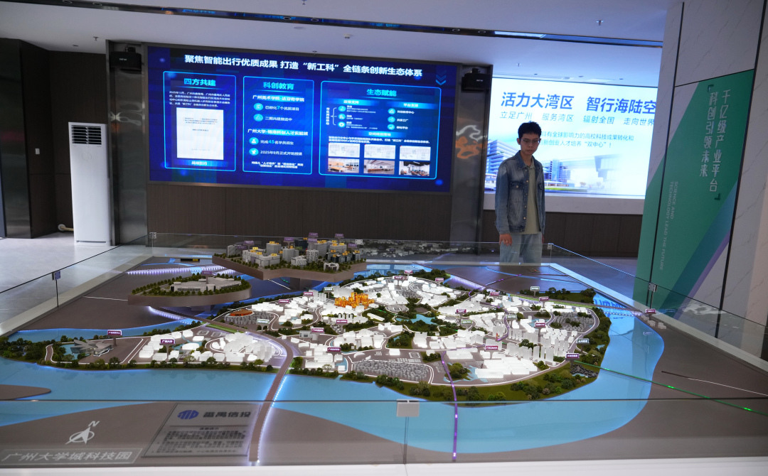 “我们探索教育、科技、人才一体化的发展战略。在大学城,利用我们的人才优势,以及广州汽车产业和未来低空经济产业的产业优势,打造支持支撑高校老师科研成果转移转化和大学生创新创业的 ‘双中心’。”