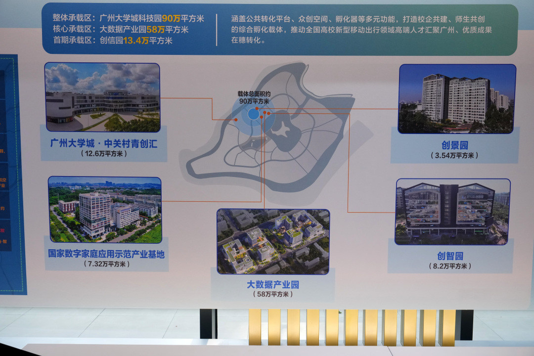 二是承接“1到10”成果放大,立足90万平方米广州大学城科技园,布局概念验证、小试孵化、展示路演等核心功能,联动规划1630万平方米的国际科技创新城、东西庄未来产业科技园,承接高校技术成果的熟化、转化加速,为项目成长提供优质“第二空间”;