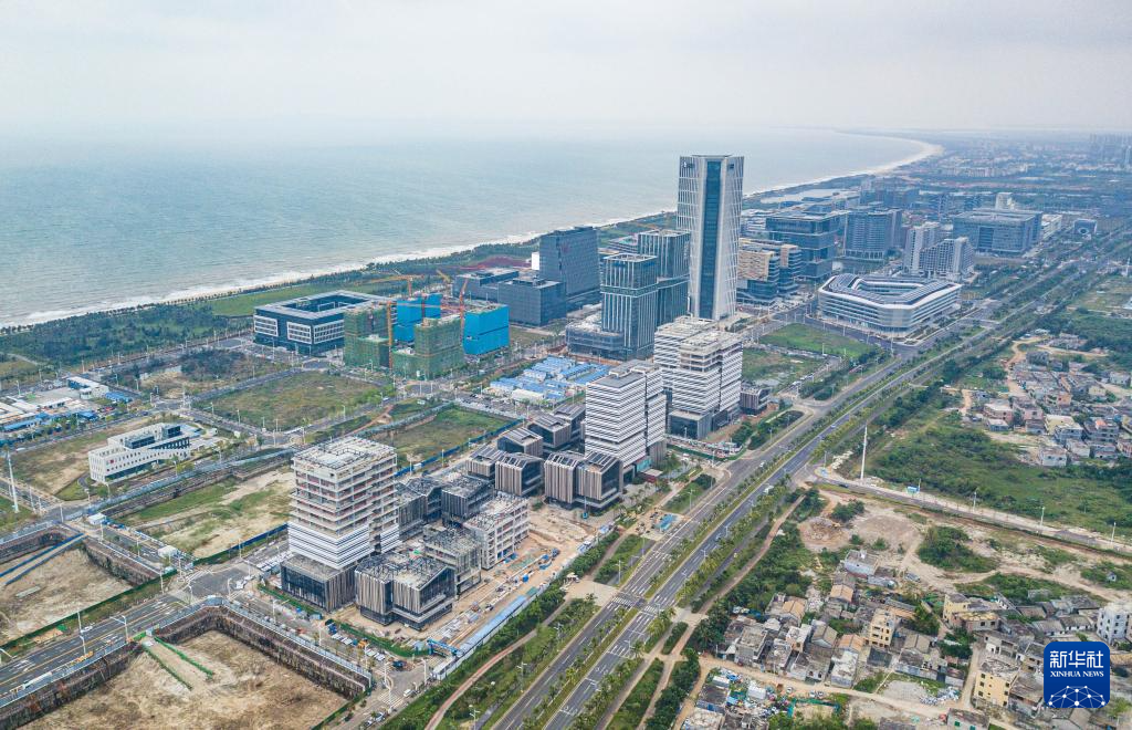 海南澄迈拍摄的海南自贸港重点园区——海口综合保税区(无人机照片,11月23日摄)