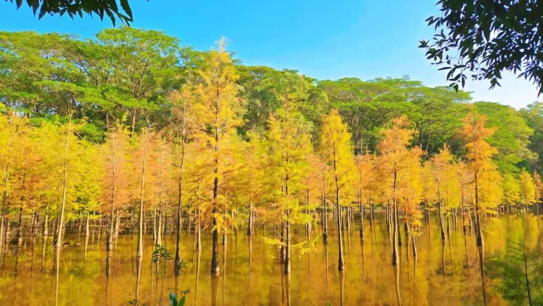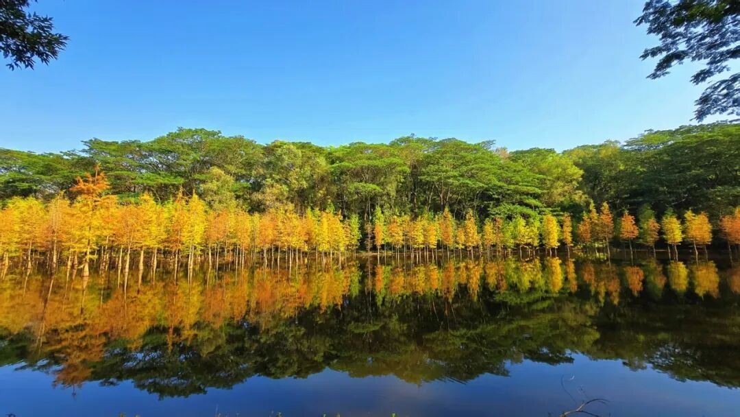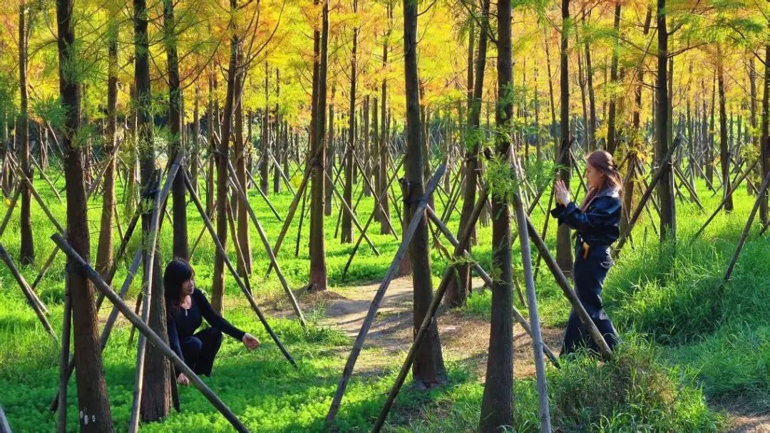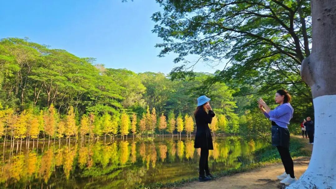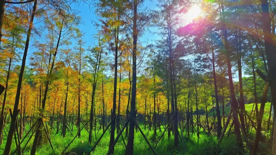 近日,大夫山森林公园的落羽杉正上演一场“暖冬变装秀”!