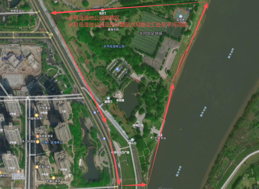 3.高赞大桥(北)堤外燃放区。