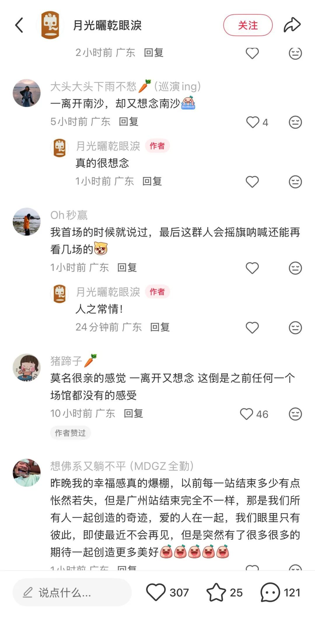 “广州站结束完全不一样,那是我们所有人一起创造的奇迹,爱的人在一起,我们眼里只有彼此,即使最近不会再见,但是突然有了很多很多的期待一起创造更多美好!”